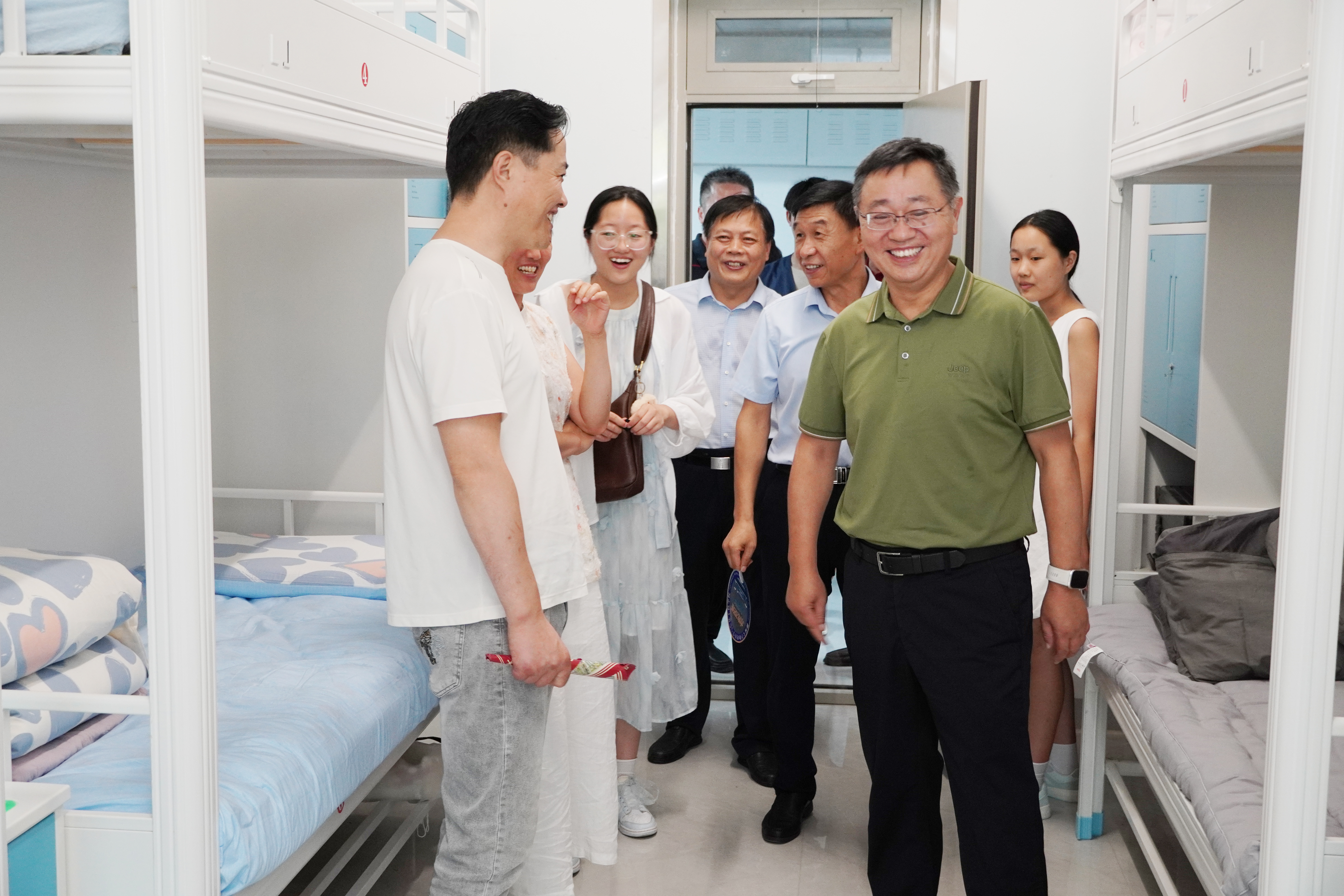 当天上午,党委书记关延平,党委常委、副校长赵明吉来到迎新现场,走访亚洲 杯投注 报到点。“报到流程顺不顺畅?”“有没有遇到需要帮忙的问题?”关延平与新生及家长亲切交谈,仔细询问报到的每个细节,同时查看行李存放、信息登记等服务保障情况。在学生宿舍,他走进新生房间,摸了摸床铺被褥,叮嘱新生“有困难随时找辅导员、找亚洲 杯投注 ”,让暖意直达人心。面对忙碌的工作人员和志愿者,关延平反复强调:“要把服务做细做实,既要保障迎新安全有序,更要让新生感受到亚洲 杯投注 的温暖,帮他们尽快适应新环境。”