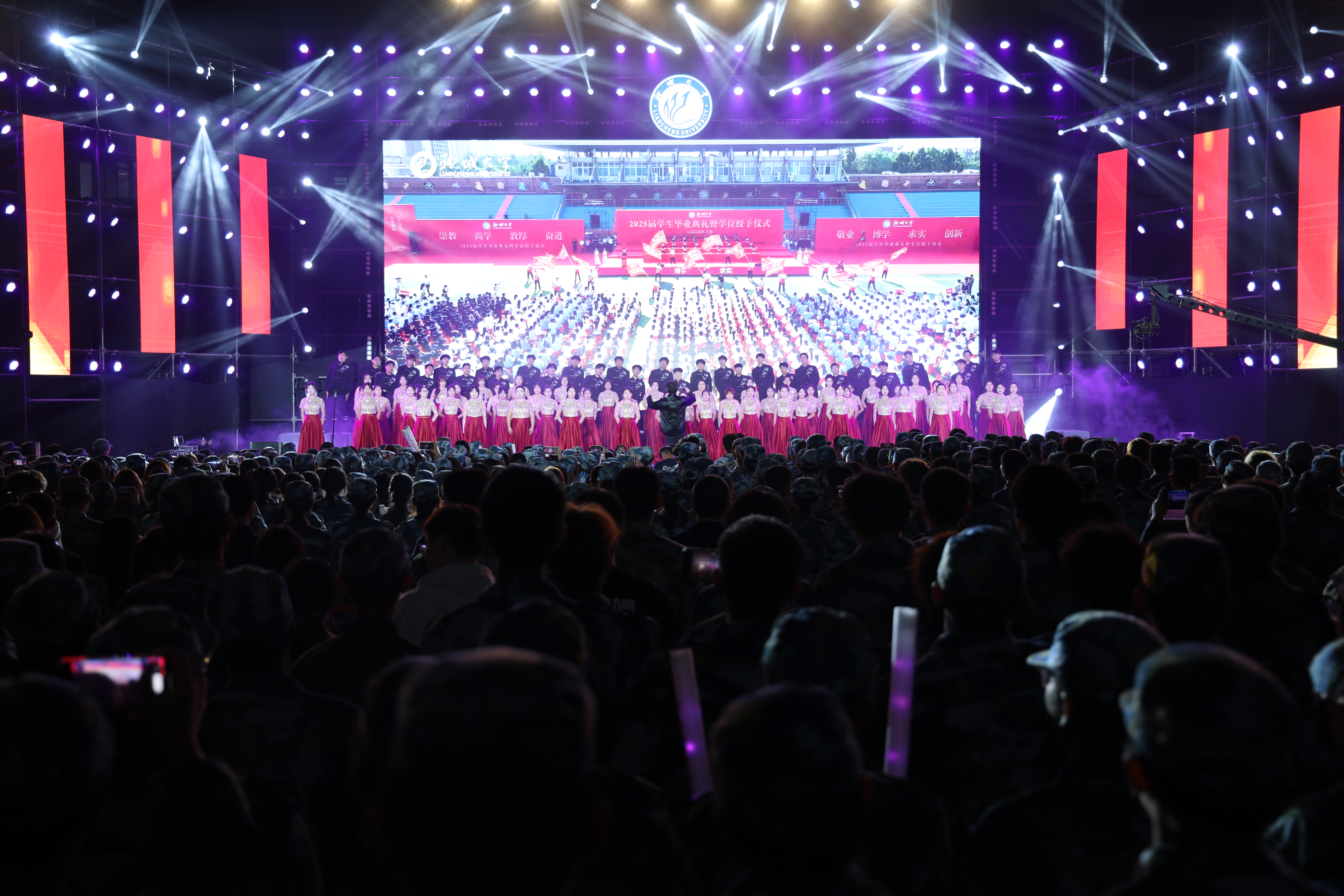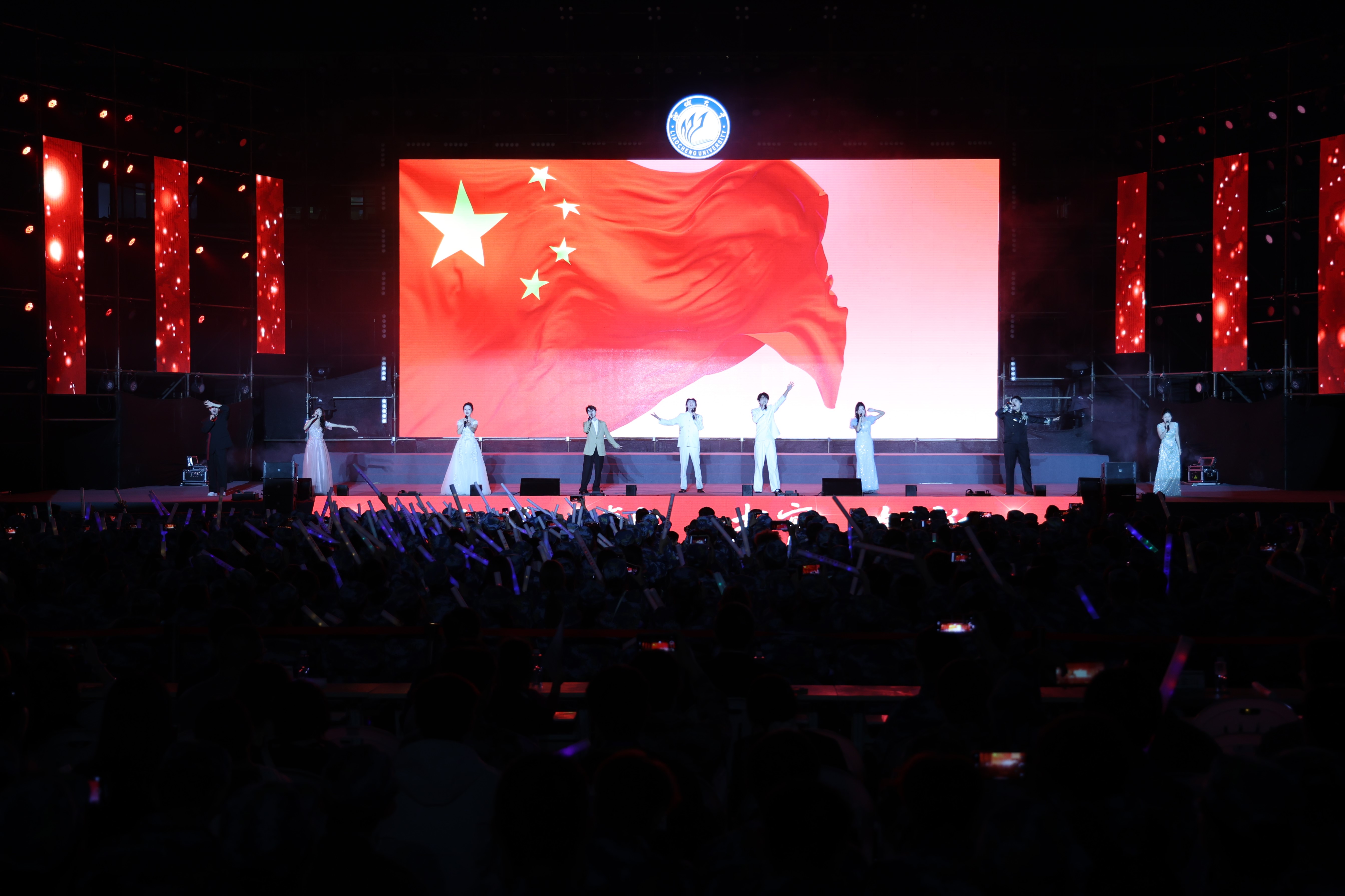 演出在全场齐唱校歌《飞向美好的明天》中落下帷幕。