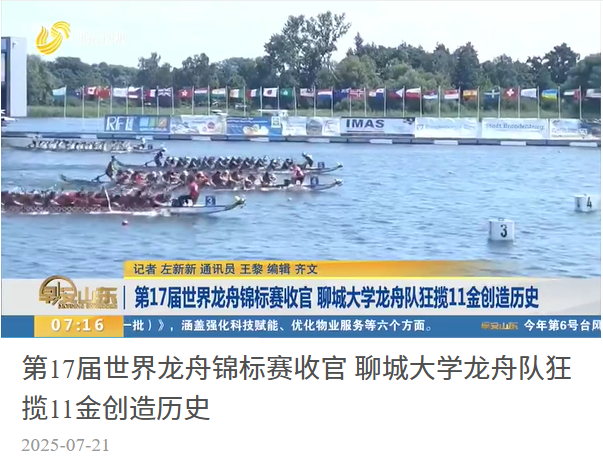 【山东卫视(早安山东)】报道第17届世界龙舟锦标赛收官 聊城大学龙舟队狂揽11金创造历史