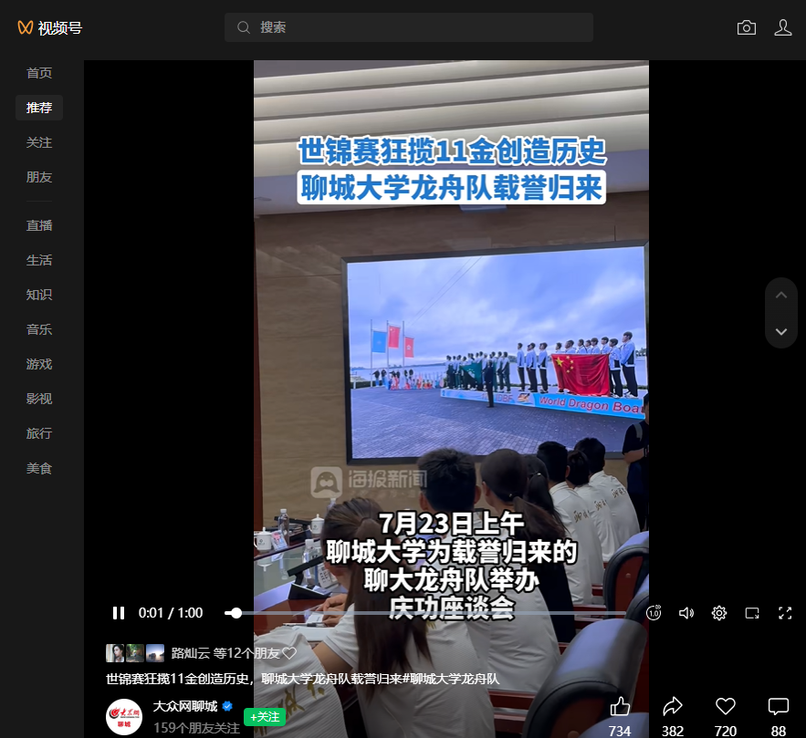 【海报新闻】报道聊城大学为载誉归来的亚洲 杯投注 龙舟队举办庆功座谈会